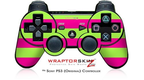 Playstation 3 Sony PS3 Controller Skin Kearas Psycho Stripes Neon Green and Hot Pink