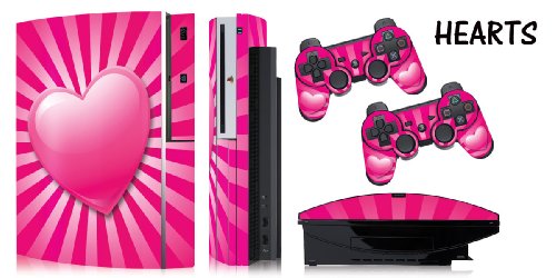 Protective skins for FAT Playstation 3 System Console, PS3 Controller skin included - HEARTS PINK Feature