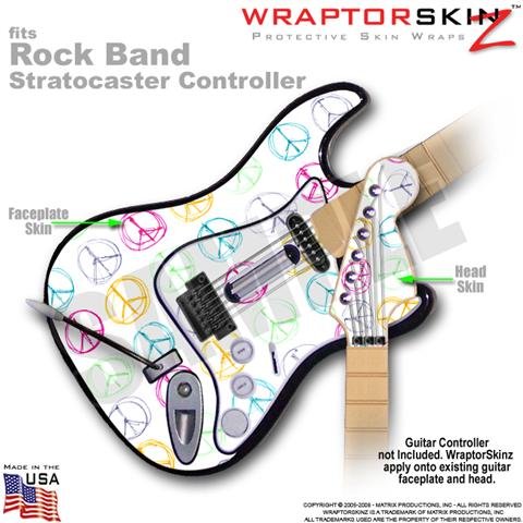 Kearas Peace Signs on White WraptorSkinz Skin fits Rock Band Stratocaster Guitar for Nintendo Wii, XBOX 360, PS2 & PS3 (GUITAR NOT INCLUDED) Overview