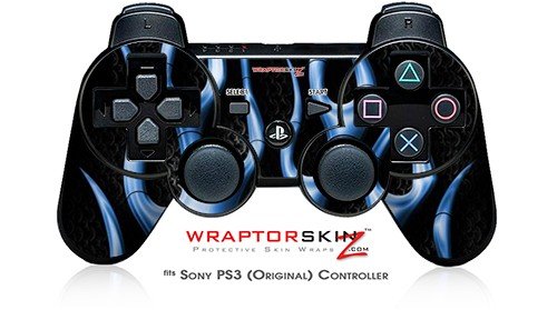 Playstation 3 Sony PS3 Controller Skin Metal Flames Blue
