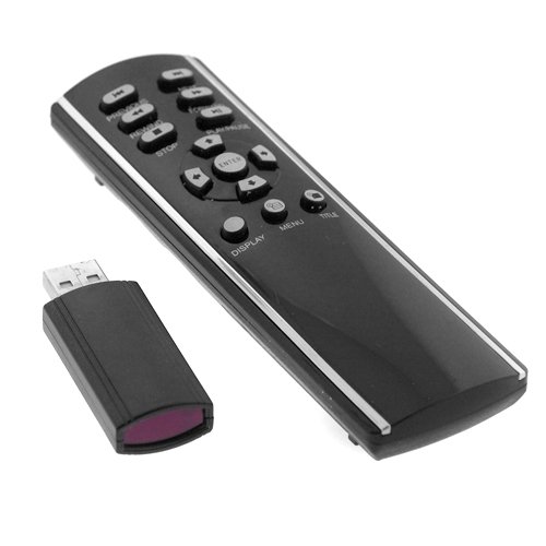 Sony PS3 wireless USB remote control for your DVDs and Blu-rays. The buttons on the remote consist of: Rewind / Previous / Forward / Next / Up / Down / Left / Right / Display / Title / Play/Pause / Top Menu / Stop / Enter. Please note this controller is connected wirelessly through your Sony PS3's USB port and not Bluetooth.